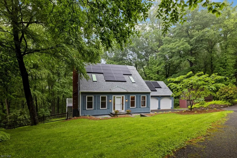 Immaculate Contemporary Cape on 2.71 private wooded acres features an updated kitchen, finished walk-out basement, whole house generator, solar panels, hardwood floors and large storage attics.