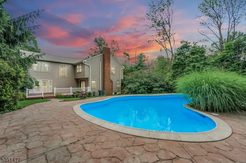 Sumptuous setting on over 3 acres in Mendham Township. Ravishing retreat style fenced in backyard with patio and in-ground pool surrounded by trees for complete privacy. First floor is an entertainers paradise! Open concept spacious gourmet kitchen with granite countertops and SS appliances. Floor plan opens to a towering great room with beam ceilings & skylights showering in natural light. Formal living room dressed with fireplace and French doors to deck area. Master bedroom with ensuite bathroom equipped with magnificent walk in closet, sitting area, and balcony overlooking the yard. 4 car tandem garage and full basement available for additional space. A short distance from major highways & stores and located in the award winning Mendham Twp School district. Come see all this home has to offer!