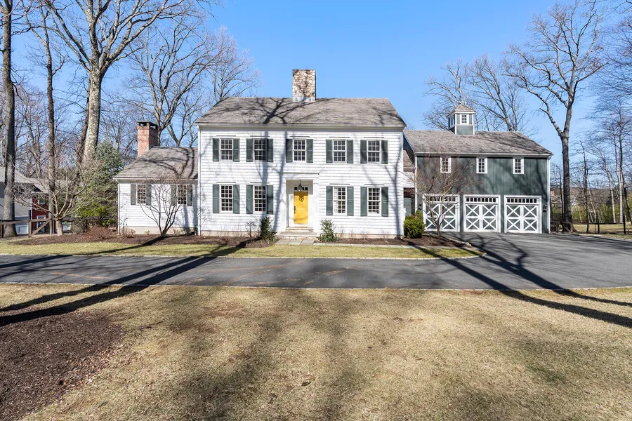 Enter this charming neighborhood to find a gorgeous five bedroom, five and one half bath custom New England style Colonial, full of charm and sophistication. This home has tremendous updates, includes a fully renovated, finished basement, complete bathroom makeovers and stunning outdoor kitchen with paver patio and pavilion. The luxury kitchen, with granite countertops, a large island with seating for four and high-end appliances flows into the impressive great room with wood burning stone fireplace, 12 foot, coffered ceiling and a wall of windows providing incredible views to the large back yard. Find the charming dining room, living room and convenient first floor office off of the foyer. A second entrance with coat cubby, bench and shelving help keep this home clean and organized. Upstairs, the primary en suite boasts a large window-filled bedroom, two custom walk in closets, updated bath, a second light-filled office and additional space. A second bedroom en suite and two more bedrooms with a Jack and Jill bath complete the second floor. The opulence continues on the third floor with another private en suite and additional storage. The newly finished walkout basement with a large recreation area, custom wine cellar, exercise room, full bath, laundry area and bonus room offers endless options. Your private, fenced-in backyard oasis awaits, where a large deck, paver patio with built-in kitchen and pavilion with wood burning fireplace are the perfect setting for outdoor enjoyment. Updates, like a whole house generator and new HVAC system and meticulous maintenance including interior painting of the entire home and exterior cleaning and staining of the siding and roof, along with four year old septic system make this home irresistible.