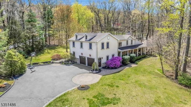 This tastefully updated 4 BR/3 BA home blends timeless charm with modern upgrades in a serene and exceptionally private setting. A paver walkway leads to a wraparound covered porch with a turreted sitting area, which is bound to be your new favorite spot to chill and recharge. The bright welcoming foyer opens to an airy living room with gorgeous hardwood floors, a wood-burning fireplace and French doors that open seamlessly to the porch: perfect for indoor-outdoor living. A chef's dream kitchen features granite countertops, custom oak cabinetry, large prep island, 5-burner Bluestar range, stainless steel appliances and walk-in pantry with coffee bar station, plus a lovely window seat! A guest bedroom is also on the main floor, as well as an option for an office. An expansive great room features a second wood-burning fireplace, French doors and dual skylights. The 2006 home addition remains relevant as it introduced wise upgrades and complete roof restoration with 5-year warranty. Outside enjoy a paver patio with a cozy upper-level sitting area at the far edge of the yard perfect for a firepit or quiet evening under the stars. Spacious 2nd floor bedrooms and updated baths complete the picture. This is a carefully maintained home; an inviting retreat just minutes from major highways, shopping options and an easy commute to Manhattan. If you enjoy hiking and the outdoors, there's Pyramid Mountain and Masar Park. Included is a 1 year AHS home warranty for the buyer.