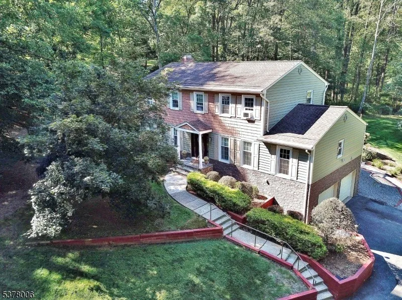 Charming & spacious Colonial nestled on a private, wooded 1.2-acre lot in Randolph. This elegant home offers a warm, functional layout with a formal dining room and large living room framed by French doors. The updated kitchen features cherry cabinets, granite counters, SS appliances, double wall ovens & an eat-in area with views of the lush backyard. The expanded family room includes a vaulted sunroom with skylights and floor-to-ceiling windows perfect for relaxing or hosting guests. A warm brick fireplace anchors the space, with direct access to the deck and private yard beyond. Step outside to an entertainer's dream: a retractable awning, elevated dining space, and beautiful natural backdrop. The main floor also includes a versatile 5th bedroom (office/playroom), powder room, and laundry/mudroom. Upstairs, all 4 bedrooms have hardwood floors and crown molding. The spacious primary suite offers dual closets and an updated ensuite bath with a custom glass shower. One additional full bath serves the hallway. Hardwood floors throughout. A/G Roth oil tank. Natural gas in street. Septic newer in 2014. Just minutes to Morristown, shopping, schools & major highways!