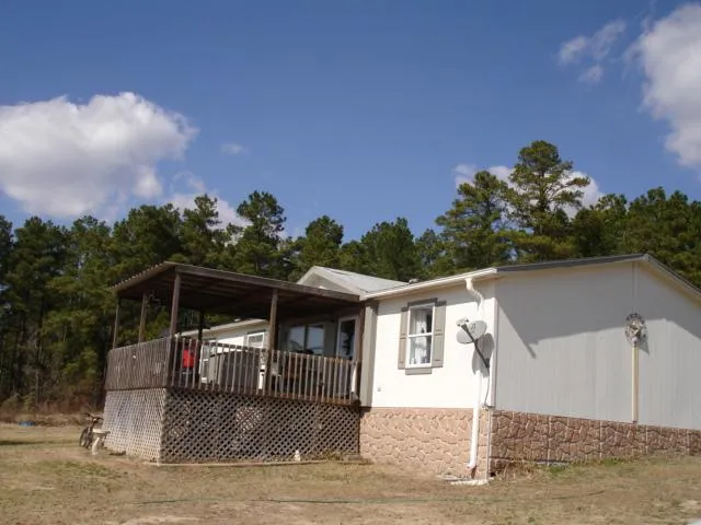 1998 model doublewide mobile home on 71.58 acres in Daingerfield (Sycamore Road), includes covered porch, above ground pool, metal building with 2 14' doors, storage building.