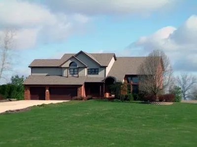 Country view with city utilities...This four bedroom, two and a half bath home offers great room with floor to ceiling brick fireplace, nice country kitchen with oak cabinetry & trim, six panel doors, twelve course block basement, high efficiency furnace, nice rear deck, brick front sidewalk, three car attached garage, and partial concrete driveway. Located on almost two acres--additional acreage available.