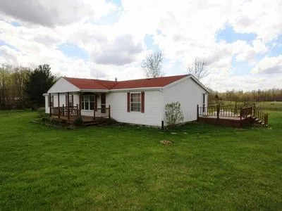 CLEAN AND NEAT! This nice three bedroom with possibility of fourth bedroom home offers large three plus detached garage (30' x 40') with cement floor and electric; four to six stall barn (30' x 40') with water; wood burning fireplace in family room; some wood floors; large rear deck; fenced pasture; Delco water & well; and lots of natural light. Located on five plus acres.