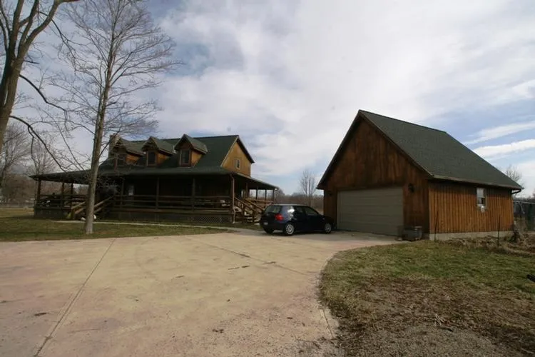 Home sits up on a knoll overlooking the pond. Great room has wood burning fireplace and five foot stone hearth, stainless appliances, large master on the main floor with laundry and access door to the wrap around porch. Very large loft overlooking great room with fireplace. Oversized detached garage with large concrete pad.