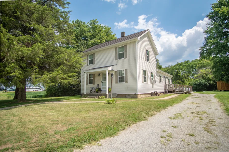 Updated farmhouse on over 3 private acres in a desirable location! This home offers 3 beds, 1 bath, open kitchen and dining area, first-floor laundry and a bonus room that can be turned into a bedroom or extra bath. The backyard boasts a lovely patio area along with walking trails throughout the woods. The kitchen and bathroom have recently been remodeled. Other updates include insulated windows throughout the home and a newer furnace. Central air is being installed for new owners!