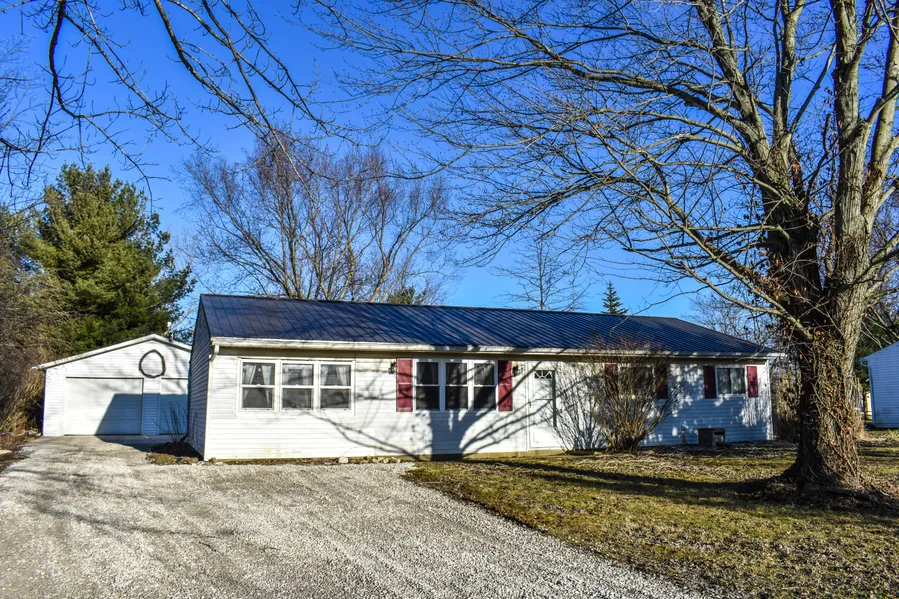 Come out to the country and enjoy this well-maintained ranch with large 2-car detached garage on approximately 3/4 of an acre. Newer roof and flooring make this a comfortable, move-in ready home. Mature trees and views of farmland make this your quiet oasis.