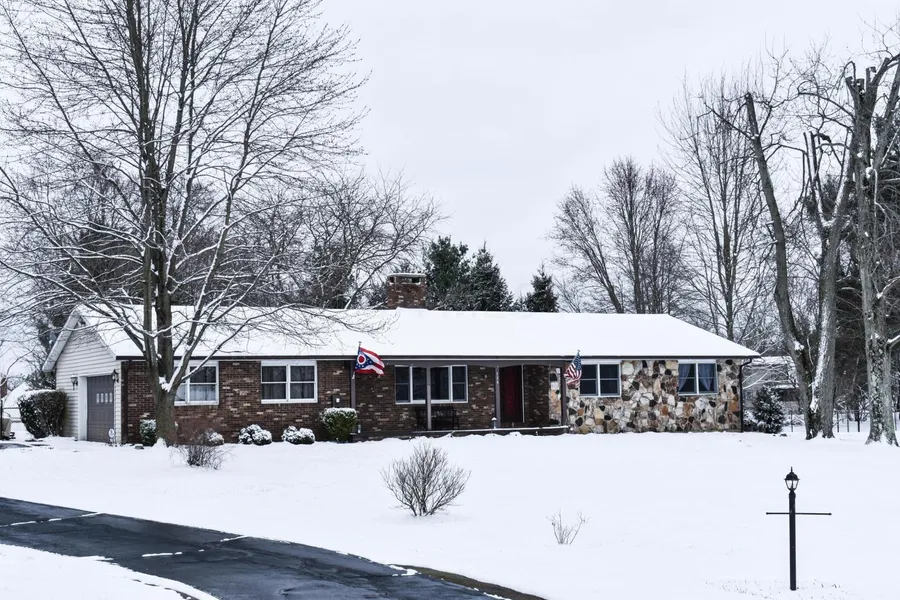 Living is easy in this spacious home sitting on large 1.8 acre village lot. The open floor plan includes four spacious bedrooms (with possible 5th/Den in basement), plenty of room for study, sleep and storage, three full bathrooms, and a large open kitchen that encompasses the dining room area and shares a double sided fireplace with the updated living room. The master bedroom, complete with walk-in and second closet, ensures private space. The full finished basement offers the opportunity for everyone to relax, use the reading nook, or enjoy the bar with family and friends. The large backyard is enclosed with a new vinyl-coated chainlink fencing. Over-sized 30X48 Pole Barn with water and electric, covered back patio. This home is ideally positioned and within 40 minutes of Columbus.