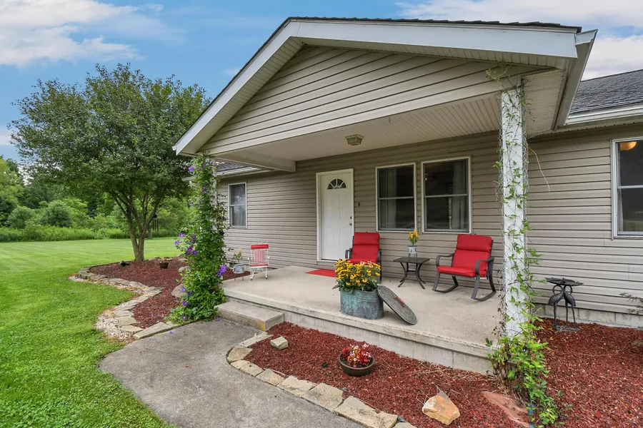 If you are looking for serenity this is the place. This ranch style home on 8.04 acres has three bedrooms two updated baths and a massive kitchen with an impressive island and additional eating space. The roof and air were replaced in 2017, new carpet July 2022, as well as the deck being painted. Laundry and mechanicals are located on the main floor(no basement to worry about) as you head back to the heated two car garage. There is a substantial shed for storing your extra equipment as well as an additional concrete parking area. The view from the back deck make relaxing easy. Country living 45 min to Columbus.