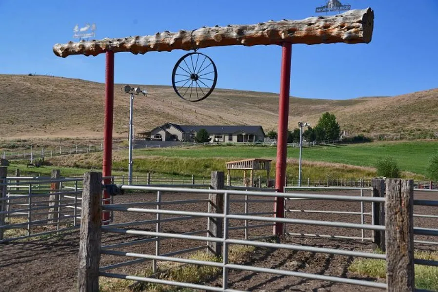 The Buckin Roll Ranch is located on Big Butter Creek, approximately 24 miles south of Hermiston and 25 miles north of Heppner, Oregon. This Eastern Oregon ranch has been under one ownership for 45 years. A balanced operation, the ranch contains livestock facilities; a roping arena; farm land with water rights, including circle irrigation; and superb buildings, including a residence; a horse barn; a shop; and hay storage.