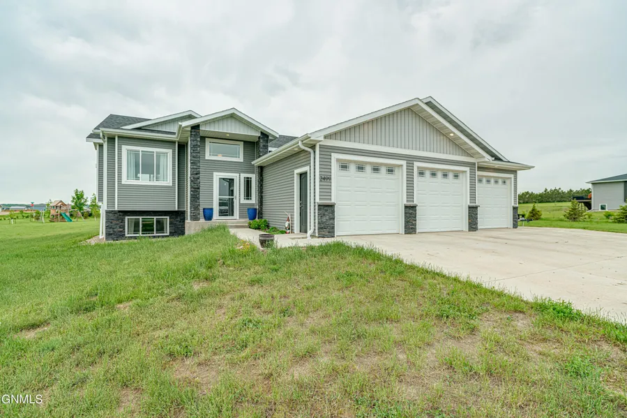 Come check out this beautiful split level home north of Mandan on over 2 Acres! Located NW of Mandan with unbeatable views and countryside living, this Rural Home is within walking distance of Harmon Lake! Activities which include: Hiking, Biking, Swimming, Fishing, Kayaking, Boating, and Camping. You will love the many custom / extras in this open layout home including quartz counters, a walk-in pantry, custom soft-close drawers and cabinets, covered deck with gas hook-up, and built in bench and hooks in entry area. More space can be found downstairs in the large family/living room with built ins and more bedrooms. Built in 2018 by JE Homes, also covenants allow for a detached shop up to 2000 square feet. Call your favorite Realtor today and come take a look!