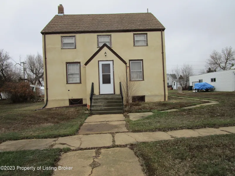 This is a grand older stucco house, built in 1900. 3 bedrooms and 2 bathrooms. Main floor laundry and eat in kitchen. Dining room office, 3/4 bathroom and large living room on the main floor. There is a 3 season porch off the kitchen. There is a gas fireplace in the living room. There are 3 bedrooms on the 2nd floor, and the main bathroom. Most of the furnishings in the house will be included in the sale. There is a 2 car detached garage with an opener on one door. The 17,700 Sq Ft lot has trees and a Dutch windmill. Natural gas heat, window air conditioning. The full basement is unfinished, with an outside entrance. Midway between Bismarck and Dickinson, 4 to miles I94, 18 miles to Lake Tschida. 35 miles to Beulah. Opportunities for hunting, fishing, golf and motocross.