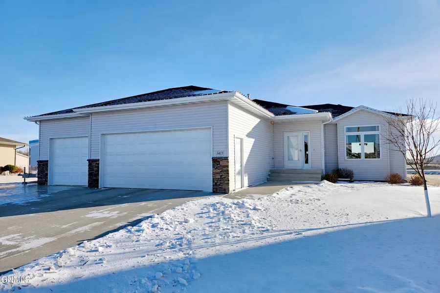 Welcome to this charming ranch home that combines comfort and functionality in a great location near Prairie West Golf Course, Lakewood Elementary, and the Lakewood Marina! With four bedrooms and three baths, this residence offers ample space for your needs. The EXTRA DEEP 3-stall heated garage ensures plenty of room for vehicles, additional storage, and projects or hobbies, and has hot and cold water. The patio and fire pit in the expansive yard provide the ideal setting for outdoor activities and relaxation. The convenient camper pad allows for additional parking, and covenants allow outbuildings as well, so all of your needs could be covered! What sets this property apart is the absence of back yard neighbors, providing a sense of privacy and tranquility. As you step inside, you'll notice the thoughtful design with custom features throughout, such as the stainless steel and maple rail...