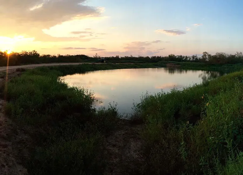 This tract is watered by an electric submergible water well that feeds a concrete drinking trough, both located in the central portion of the property. The highlight of the property is a stocked fishing pond, complete with a small dock/platform that holds a fish feeder.