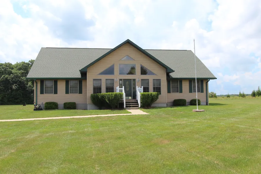 Beautiful, one owner, 5 bedroom, 3 bath home on 3.44 acres. Step into the great room with its vaulted oak ceiling for that country at home setting. Large open dining room overlooks composite deck. Master bedroom, walk-in closet and master bath conveniently separated from other two bedrooms on main floor. Cute as a button child's bedroom with animal motif. Kitchen with an abundance of cabinets and counter space. Utility room on main level. Four foot wide staircase leads to finished basement with family room, playroom/den and 2 more bedrooms. Separate room contains an 8 person hot tub. Building is metal 36 x 48 and contains 3 bays for vehicles and extra area with workbench. Deck overlooks the children's play area and huge backyard. Refrigerator in basement, pool table & hot tub stay with property.