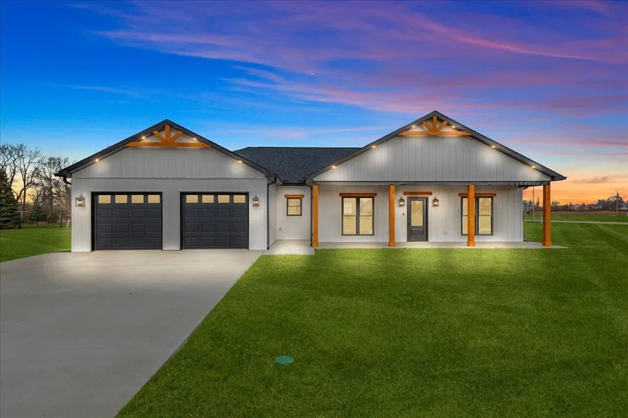 Welcome to luxury modern farmhouse living in the heart of Bethany - where elevated design meets the ease of small-town life. This custom-built, zero-entry ranch offers 4 bedrooms and a bright open layout created for both comfortable living and effortless entertaining. Set on an expansive double lot, the home delivers rare space, privacy, and standout curb appeal with striking high-density vertical siding. Inside, thoughtful craftsmanship and quality finishes create a polished, upscale feel throughout. The oversized primary suite serves as your private retreat, featuring a beautifully tiled custom shower, freestanding soaking tub, private water closet, and a large walk-in closet ready to be tailored to your needs. An extra-deep garage with built-in attic storage and a tankless water heater add everyday convenience. This home adds long-term value, listed well below initial appraisal value. Enjoy the peace of a close-knit community while staying just a short drive from Decatur, Lake Shelbyville recreation, and within reach of larger cities including Champaign, Springfield & Chicago. Rare for the area and designed to impress - this is more than a new home, it's a lifestyle upgrade.