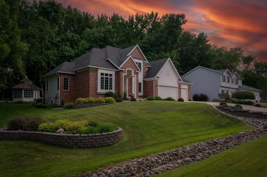 Nestled in a captivating NW neighborhood, this executive home harmoniously blends with its wooded surroundings. The foyer welcomes you to a sprawling layout. The primary bedroom which is on the main level features a walk-in closet, Jacuzzi tub, and shower. A 2010 addition significantly expanded the main floor, showcasing a custom kitchen with granite countertops and a center island. The residence provides both formal and informal dining areas, completed by a gathering room. A curved staircase takes you to the upper level where you'll find two large bedrooms and a full bath. The lower level presents a spacious family room, complete with a wet bar, 3/4 bath, bedroom and workout room. Main floor laundry room. Newer furnace and water heater. The backyard is a true haven for entertainment, boasting a sizeable Trex deck, while a delightful 3-Season Gazebo offers an idyllic retreat for relaxation and unwinding amidst the tranquility of the surroundings.