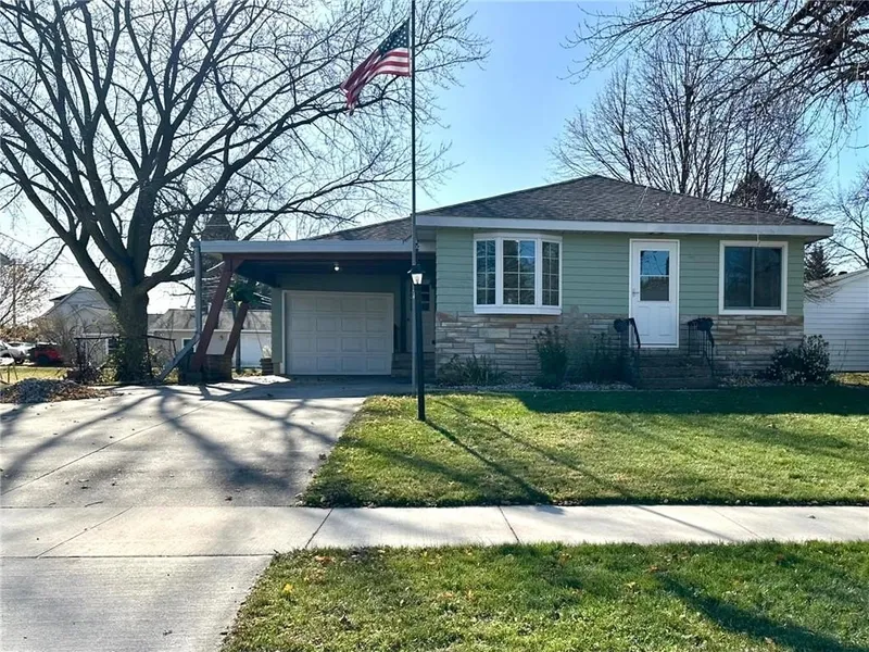 Step into this charming, three bed two bath home located on a dead end street with alley access. The main floor of this home boasts a spacious, eat-in kitchen, a cozy living room, three bedrooms with closets and a full bath and laundry all on one level. The lower lever offers more living space with an extra family room and den as well as a kitchenette and 3/4 bath. Step outside to the back of the house and enjoy time on the 13'x23' cement patio that is new in 2025 or spend time in the 13'x16' three season sunroom with new windows installed in 2024. New Roof in 2022. Additional perks to this property include: an 8'x12' storage shed, a spacious 14'x22' single stall garage, with a new garage door installed in 2022, and an attached 14'x18' carport with a cement driveway that provides ample parking space. Small town living at its best!!!