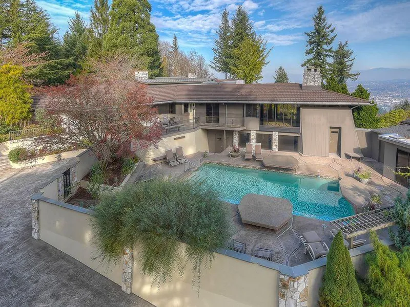 Brilliantly Own This Sleek Frank Lloyd Wright Inspired Mid Century. Portland City Lights, Mountains & Rivers. Conceived by A Portland Personality and Renowned Construction Icon. Floor to Ceiling Windows, Steel Beams, Mountains of Horizontal Stone Work Slice Inside to Out. Think Gene Autry Parker Meridian Meets Jonathan Adler. 4885 Square Foot of One Level Living. 1000 Bottle Wine Vault and Indulgent Swim Pool. Secret Service Garage.