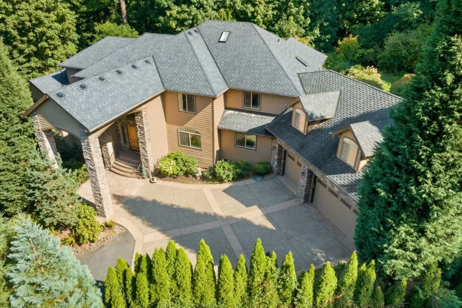 Unparalleled grandeur awaits you in this meticulously crafted custom home nestled on your own private two wooded acres. If you've been dreaming of a tranquil retreat that combines opulence with natural beauty, look no further. Tall ceilings grace every room, with an awe-inspiring 18' tall Great room featuring floor-to-ceiling windows that frame a captivating custom fireplace. This magnificent space overlooks the inviting pool area, complete with a serene water feature. Immerse yourself in a world of luxury with custom crown moldings, forged balusters adorning a circular staircase, rich tiger hardwood floors, and alder antique glazed cabinets. Wrapped windows with 4? molding and nutty alder oversized doors add an extra layer of sophistication. The heart of this home boasts rich granite countertops and top-of-the-line Electrolux-Icon appliances, making it a chef's paradise. The main floor is where you'll find your private sanctuary. The primary suite offers a cozy fireplace and a sumptuous ensuite bathroom with a soothing soaking tub and a spacious walk-in shower. For those who work from home, a private office is conveniently located on the main floor, providing a quiet space to focus. Upstairs, discover separate bedroom ensuites and a versatile flex space that can be customized to your needs, whether it's a playroom, gym, or more. The lower level is thoughtfully designed for multigenerational living or potential income generation. It features separate living quarters with a well-appointed kitchenette and a sauna. With its own garage and entrance, it could even be an ideal Airbnb rental opportunity. This property offers true seclusion, surrounded by old-growth timber. Yet, it's conveniently located in Gresham Heights with easy access to amenities, schools, and parks. This is not just a house; it's a lifestyle. Separate acre lot can be developed or support a second dwelling unit for mutigenerational living or garages for the car enthusiast!