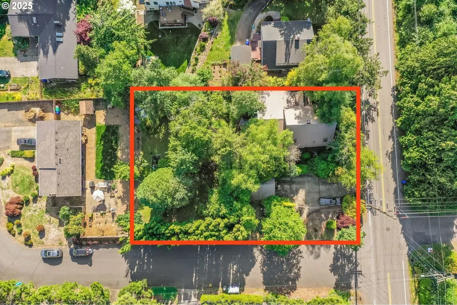 VIRTUAL HOME. Just a 2-minute walk to Hamilton Park & Bridlemile Elementary, this rare property in a beloved SW Portland neighborhood is ready for your vision. The existing home is technically livable & financeable with conventional lending-offering a unique path to secure buildable land without the typical cash-only hurdle. The .39 acre lot offers the chance to build your dream home on a quiet dead-end street, and features mature landscaping, including fruit trees & a striking Sequoia. According to the City Planning Department, you could build either a single home with up to 4,000 SF on the main floor and two detached ADUs, or up to 3 side-by-side attached luxury townhomes, Two of these images feature virtual renderings of Villa M, a project in Dunthorpe designed in collaboration by Grummer and Metta Architecture. The project offers a glimpse of the refined, modern architecture that could be envisioned for this site. Repurpose existing utilities, reduce permitting costs, and bring your dream to life in one of Portland's most sought-after neighborhoods.