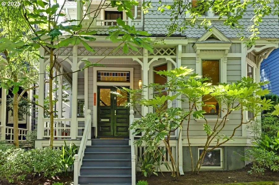 NEW PRICE at best value! Historical and refined. Experience historic architecture, rich history, in a vibrant community. One-of-a-kind Victorian located on a tree lined block in Portland's Historic NW Alphabet District blends timeless East Coast charm with modern PNW appeal. Built in 1890 and listed on the National Historic Register, one of significant Herman Trenkmann Houses. This thoughtfully reimagined restoration honors the home's original craftsmanship while introducing a modern sensibility and artful aesthetic. Featured in Oregon Home,"The Artful Victorian." High ceilings, detailed casework and moldings, stained and leaded glass, pocket doors, and wood floors highlight its historic character. The open-concept kitchen, dining and living areas redesigned to maximize natural light and create effortless flow ideal for everyday living and entertaining. A cozy, shelf-lined library offers the perfect nook for a quiet read or conversation. Upstairs you'll find four bedrooms, including a serene primary suite with custom closet and private balcony. A flexible office/ studio space with vaulted ceilings and skylight can serve as a fifth bedroom. The brand new lower level bonus/family room makes a great space for media, music, or movie nights. A convenient exterior door from the basement/lower level leads to the garden and patio. French doors open from the kitchen/dining areas and lead to the patio and lush garden idyllic for outdoor dining and gatherings. Notable upgrades include new Neil Kelly porch/custom iron railings, newer wood windows, roof, gutters skylights (2019),new sewer line (2021), and UST Decommissioning. Unmatched location just blocks from NW 23rd, the Pearl District, parks, specialty shops, and unlimited dining. With easy access to OHSU, I-5, Hwy 26, Nike WHQ, and the high tech corridor. Top rated schools, Chapman, West Sylvan, and Lincoln High School. [Home Energy Score = 1. HES Report
