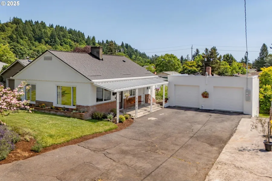 Perched in a peaceful setting with sweeping views of Rocky Butte, this charming bungalow/ranch offers remarkable flexibility with TWO SEPARATE UNITS, for shared living or instant income potential. Restored to its original character in 2022, the main home features hardwood floors, an updated kitchen with w/quartz countertops, farmhouse sink, handmade tile, & Miele dishwasher. The living room centers around a cozy wood-burning fireplace, perfect for quiet evenings or entertaining. Charming archways and spacious bedrooms. The lower level provides flexibility to grow with your needs, featuring a daylight basement with a half bath and ample space to create a third bedroom, guest suite, or even a third separate living unit. Brand new water heater this month. All new in 2022: Heat pump furnace, Central Air. A separate apartment (fully renovated in 2025), an original 2BD/1BA apartment complete w...