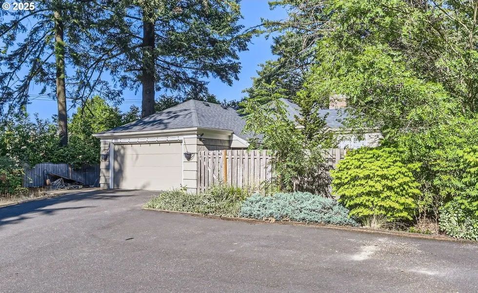 Set behind a gated entry and mature hedge, this one-of-a-kind SW Portland home offers privacy and flexibility. Located in the sought-after Crestwood neighborhood, the property sits above Taylors Ferry Road on a shared private drive and spacious 0.22-acre lot surrounded by trees. Inside, the well-designed layout features three bedrooms and two full bathrooms on the main level. The kitchen blends style and function with stainless steel appliances, a gas range with ceiling-mounted hood, farmhouse sink, and glass-front cabinetry. French doors off the living room open to a private backyard patio-perfect for relaxing or entertaining. The open living and dining areas feature hardwood floors and a wood-burning fireplace. The primary suite includes a double vanity, walk-in shower, tile flooring, and a barn-style sliding closet door. A wrought iron-accented staircase leads to the partially finished basement, where a second fireplace anchors a versatile bonus room ideal for a family room, office, or 4th bedroom. A laundry area with sink and a large unfinished storage room add function and future potential. Out back, the fully fenced yard offers mature trees, a treehouse, and multiple outdoor living spaces to gather, garden, or unwind. Recent improvements include exterior paint and newer gutters. Minutes from parks, trails, local eateries, and vibrant Multnomah Village, with quick access to Hwy 99, I-5, and public transit, this location puts both nature and city conveniences within easy reach. [Home Energy Score = 1. HES Report