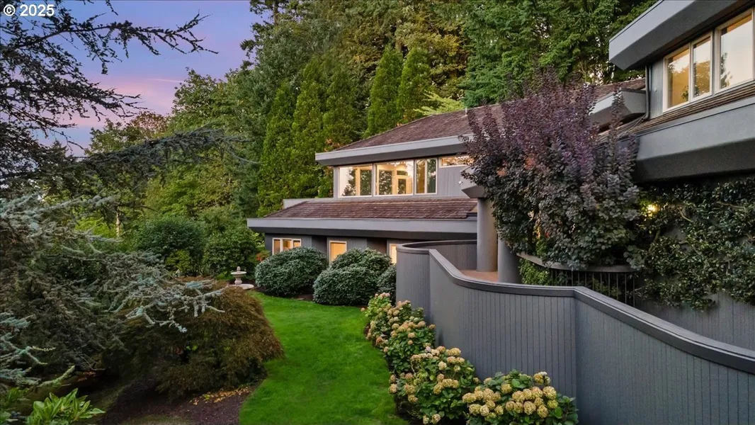 Live effortlessly in this one-of-a-kind Portland Heights residence, a home that blends contemporary urban design with natural serenity. Thoughtfully planned and superbly executed by renowned Oregon designer Steve Van Sant, this property showcases generous rooms, handsome built-ins, and walls of windows framing breathtaking views of the city and mountains. Perfectly positioned at the end of a private drive and bordering protected woodlands, the home offers rare privacy and elegance. The gated exterior offers a level lawn, expansive decks, and lush gardens-an ideal setting to enjoy the beauty of the natural surroundings. Distinguished by architectural detail, refined finishes, and seamless integration with its natural setting, this property offers both artistic sophistication and timeless comfort-while being only minutes from parks, trails, downtown, hospitals, schools, NW Portland, and the high-tech corridor. [Home Energy Score = 4. HES Report