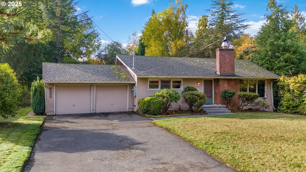 Mid century ranch packed with period details on more than a half acre in a cushy section of Southwest. Living space all on one seamless level. Retro-chic living room with original brick wood burning fireplace and killer floor-to-ceiling windows. Hardwood floors throughout. Sophisticated formal dining room has a sweet built-in that adds charm to any cozy dinner party. Darling kitchen with cheery breakfast nook, big windows, and cute checkered backsplash. Two large sunny bedrooms share a spacious bathroom with tub. Downstairs features a laundry area and storage/flex space. Huge lot filled with vibrant shrubbery, trees, and space to make your dream garden or outdoor getaway. Plus, newer Presidential roof and two-car garage. Near lots of restaurants and shops on Scholls Ferry, Raleighwood Wetlands Natural Area, Portland Golf Club, and much more! [Home Energy Score = 3. HES Report