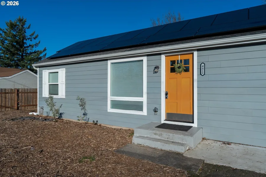 Quaint, beautifully renovated 2 bed, 1.5 bath home across from a park. Light-filled interior with engineered hardwood floors, quartz countertops, stainless steel appliances, and new window treatments. Fully fenced yard with raised garden beds and a front yard ready for your landscaping vision. Fruit trees and berries on site; including plum, mulberry, fig, apple, pear, blueberry, pineapple guava and autumn olive! The established garden beds are planted with perennial asparagus, garlic and bulb onion - ready to harvest this June. Newly installed solar panels, EV charger, and whole-home battery backup for added efficiency and peace of mind. Just a short walk to schools, groceries and the local library! A rare blend of charm, sustainability, and prime location. [Home Energy Score = 6. HES Report