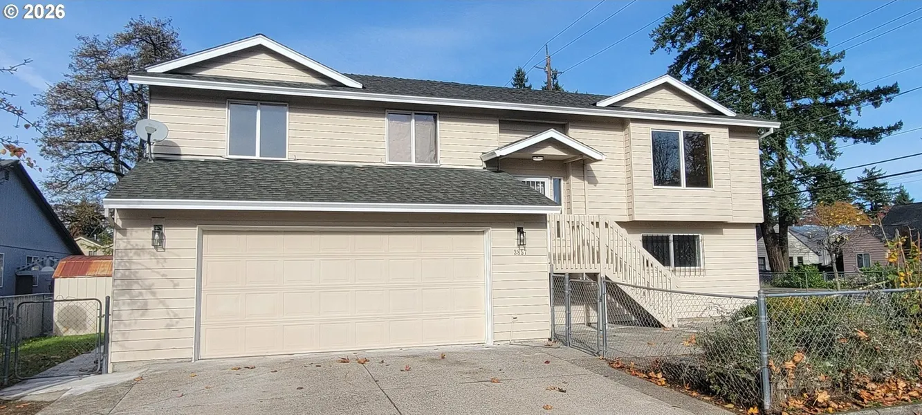 Situated at the corner of a private road off SE 136th Ave. Very spacious 5 BR house or 4 BR plus a huge family room with fireplace on lower level of this split level style home. Oversized 2 car garage for boat storage or other items. Side yard can be converted to parking pad if needed. Covered deck upstairs from dining room access and a covered patio on lower level for outdoor smoking and work out. Separate laundry room with exit door to backyard. Perfect for multi generation family or guest visit.
