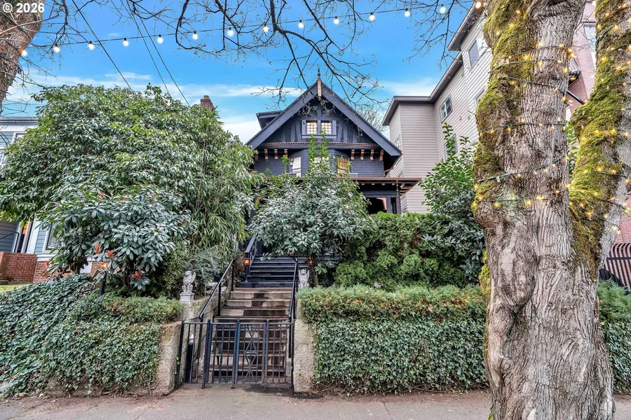 This exceptional Victorian combines preserved historic charm with top-to-bottom remodel for modern living. The exterior retains its National and Oregon Historic Registry status, while the interior showcases refined Craftsman details, smart-home convenience, and thoughtful design throughout. Offering four to five bedrooms and three-and-a-half baths, the home features multiple modernized bathrooms with granite finishes, LED vanities, UV lights, USB-C charging, and advanced water-pressure systems. The two-story primary suite lives like a private apartment, complete with a spa-inspired bath and custom walk-in closet, adaptable for a nursery, office, or extra bedroom. With a beautiful fireplace in the living room keeping the home cozy. The finished lower level adds about 1,000 sq. ft. with a separate entrance, bath, and kitchenette-ideal for guests, multi-generational living, or rental income. The kitchen is fully rebuilt with custom cabinetry, premium granite and tile, and cafe-style stainless steel appliances. Original wood floors are preserved beneath upgraded flooring, trim, and LED lighting. Major systems include a 2021 roof, Lennox HVAC with UV filtration, new sewer and water lines, on-demand water heater, seismic reinforcement, and modernized electrical with smart controls. Outdoor spaces impress with a covered front porch, tiled porte-cochere, and expansive 500sqft back deck with lighting, power, heat, and track flooring. The private backyard features a water feature, side dog run and upgraded landscaping. Located in the Alphabet District near the Pearl, this home offers a 99 Walk Score, easy access to transit, shopping, dining, and entertainment-offering rare historic character with modern luxury living. There is Resident M Permit Parking and paid lots within a block of the property. [Home Energy Score = 1. HES Report