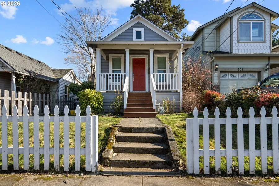 Energy efficiency meets a 1905 classic Portland cottage. This home includes thoughtful upgrades like new attic & basement insulation and triple pane windows. A spacious front porch and open front yard create a warm first impression and provides privacy being perched above the street. Inside, you'll find fresh interior paint paired with original flooring & tile that highlights the history protected within. The layout is practical and easy to live in, maximizing every square foot with an efficient flow. Downstairs, a generous basement provides excellent extra space for storage and hobbies with amiable head clearance. Out back, the fully fenced yard is ready for garden beds, outdoor gatherings, or simply enjoying your own private retreat, complete with covered storage to keep tools and equipment protected year-round. A wonderful opportunity to settle into a sweet Portland neighborhood close...
