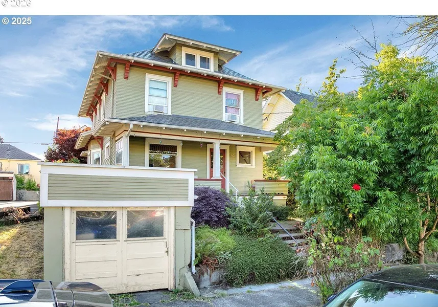 Craftsman foursquare with two story 2013 ADU in matching style. Located just blocks from Mississippi Ave and N Williams; incredible access to groceries, restaurants, services and transportation. 1907 main house has a front porch perfect for people watching. Historic touches throughout; vintage claw-foot tub, iron kitchen wall sink, gorgeous wood trim. Southwest facing sun-room off of the dining room is bathed in winter light. Full bath upstairs, half bath on main. Newer maple floors on main. Detached garage set up for bike parking and storage. Walk-in closets in bedrooms. New, reinforced foundation. ADU has replica finish carpentry with a beautiful staircase and vintage doors; large dedicated outdoor area for outdoor dining.