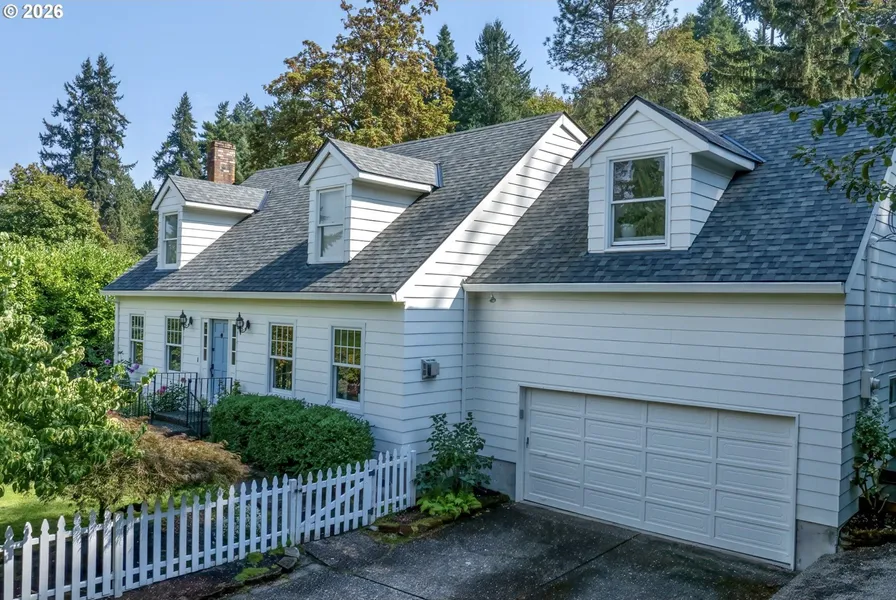 Discover elevated style and timeless charm in this beautifully updated Cape Cod, nestled on a quiet, tree-lined street in coveted Dunthorpe. Surrounded by lush gardens and natural privacy, this light-filled home offers a serene neutral palette and thoughtfully designed living spaces throughout. Bamboo floors, abundant built-ins, and carefully curated updates enhance both function and character. This home is a seamless blend of classic architecture and refined modern living. The private backyard is a true oasis, featuring a welcoming deck and an enchanting Italian-inspired garden framed by multiple trellises draped in climbing wisteria and clematis. A white picket fence and flowering gardens create exceptional curb appeal. Located in the sought after Dunthorpe neighborhood in unincorporated S Portland, this quiet enclave offers both privacy and convenience - just 15 minutes to downtown Portland and five minutes to Lake Oswego, with premier dining and shopping nearby. The Lewis & Clark trails are just a short stroll away. French doors in the exquisite dining room open gracefully to an expansive brick terrace, creating a seamless flow for refined indoor-outdoor entertaining. The elegant formal living room-anchored by a wood-burning fireplace and custom built-ins-adjoins the dining room. Just off the kitchen, the family room features a new gas fireplace and direct access to the terrace, blending comfort with livability. One of the highlights of the home is a spectacular main level office or 4th bedroom with floor to ceiling bookshelves and built-ins. Upstairs, the spacious primary suite serves as a serene retreat, complete with a fully renovated bath and beautifully customized closets featuring dedicated jewelry drawers and thoughtfully designed shoe storage. A generous, light filled bonus room provides space for guests, work, or recreation. Each bathroom has been tastefully remodeled to reflect modern comfort while honoring the home's enduring architectural character.