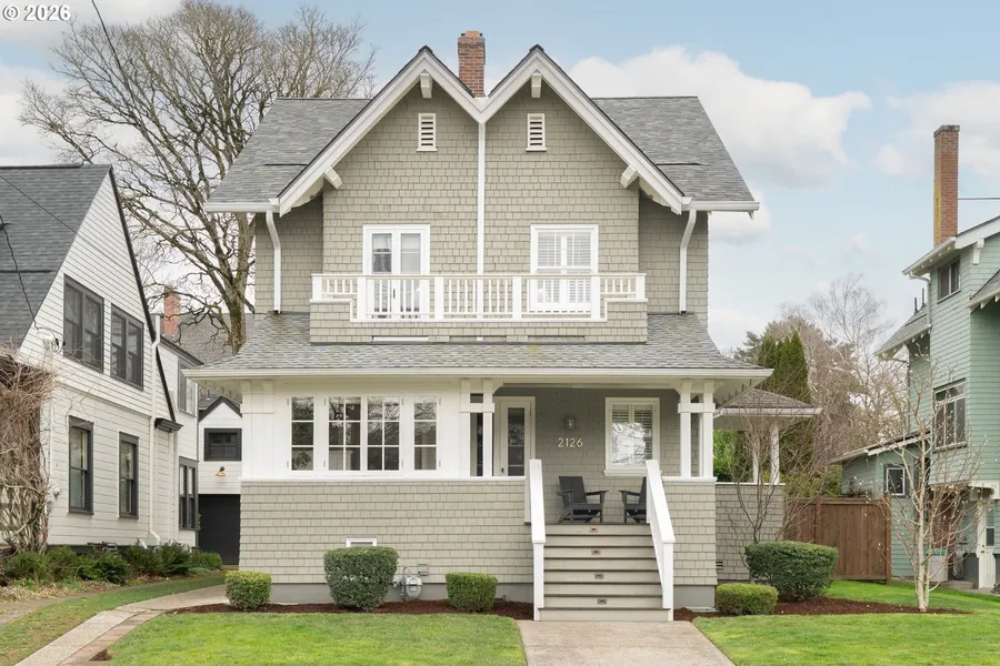Perched proudly on one of Irvington's quietest streets, this elegant craftsman showcases more than a century of historic detailing designed by iconic architect Ellis F Lawrence (founder of University of Oregon School of Architecture). Wainscoting, picture molding, and rich hardwood floors showcase timeliness charm, while extensive modern-day upgrades offer ease of luxury living. The renovated kitchen features quartz countertops, Carrara marble accents and thoughtful storage. A wood-burning fireplace framed by built-ins anchors the living room while classic French doors open to the outdoors for an effortless flow. Upstairs, the primary hosts a remodeled ensuite bathroom, private balcony, and dual closet systems. Completing the second floor are two additional bedrooms and a drool-worthy designer finishes. The third floor boasts flexibility for 4th bedroom or family room, plus office space and storage. Outside, the fenced backyard provides room to run, play, and entertain with mature greenery for privacy. High-value updates offer long-term peace of mind, including a new roof with transferrable warranty (2025); basement waterproofing, drainage system, and seismic retrofitting (2021); rebuilt front porch (2021); A/C & new electrical sub-panel (2019); chimney restoration (2018); and radon mitigation system (2018). A full list of home features, updates, and enhancements is available. Located on a rare cul-de-sac, just moments from the beloved Irvington Club, vibrant dining & coffee shops, and top-rated schools including Grant High School, this home places you in the heart of one of Portland's most storied neighborhoods.