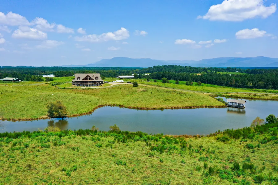 Welcome to this extraordinary grand custom log home nestled in the beautiful landscapes of North Georgia. This expansive home boasts over 8,600 square feet of living space with a total of 7 bedrooms and 5 bathrooms, ensuring ample space for family, guests, and endless possibilities. Step inside and behold the immaculate solid wood interior with breathtaking woodworking throughout. The great room welcomes you with its magnificent stone fireplace and floor-to-ceiling panoramic windows, offering breathtaking views of the surrounding mountains, including the iconic Fort Mountain. Relax and soak in the stunning long-range views from the second-story rear deck, providing the perfect sanctuary to unwind and appreciate the natural beauty that surrounds you. On the main floor, you will find the great room, kitchen, dining room, breakfast nook, pantry, laundry room, 2 bedrooms and 2 bathrooms. On the upstairs floor, there are 3 more bedrooms and 2 bathrooms. The finished full basement offers a cozy fireplace, kitchen, living room, 2 bedrooms, 1 bathroom, and central heating and A/C. This versatile space could be utilized as a private apartment or guest quarters, accommodating your needs and desires. With 2 water wells onsite, you can enjoy the luxury of a private water supply. Natural gas provides efficient heating for your comfort. Start your mornings off right by sipping a cup of coffee on the 360-degree wrap-around porch, immersing yourself in the refreshing mountain air. Beyond the comforts of the home, this property offers an array of outdoor amenities. Spend your leisure time fishing and boating in the stocked 4+/- acre lake or tending to your own backyard garden, growing fresh vegetables. The gently rolling pastures, fenced and cross-fenced, cater to your livestock's needs. Additionally, there is a 100-foot by 84-foot barn and a spacious 30-foot by 20-foot livestock shed, providing ample space and storage for your agricultural endeavors. Poultry operations are located to the north of the property. Don't miss the opportunity to own this exceptional property that seamlessly blends natural beauty with distinctive craftsmanship. Contact the listing agent, Jason McGee, today to schedule a private showing - this property is shown by appointment only.