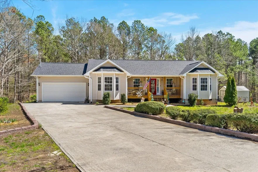 Experience peaceful country living in this beautiful 3-bedroom, 2-bath home on a private 1-acre lot with no neighbors in sight. Built in 2018, this well-maintained home features an open floor plan with stunning cathedral ceilings, creating a bright and airy feel. The spacious main bedroom offers a touch of elegance with a tray ceiling and an en-suite bath. A 2-car garage provides ample parking and storage, while the additional shed offers extra space for tools or hobbies. Enjoy the serenity of nature while still being just a short drive from town. Don't miss this rare opportunity for privacy and comfort in a modern home! BACK ON THE MARKET NO FAULT DUE TO THE SELLER.
