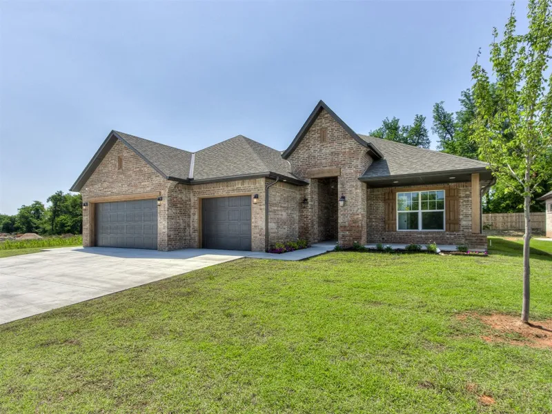New construction home in Midwest City! You can still pick out your carpet. As you make your way through the foyer, you'll be welcomed by an instant view of the natural brick fireplace and open floor plan, giving the perfect combination of cozy and modern. The kitchen boasts elegant details like white quartz counters, and custom black tile backsplash. It also comes complete with stainless steel appliances, bar seating at the large island and a sizeable pantry. The primary bedroom has a stylish tray ceiling and a dreamy primary bathroom with a double vanity, gorgeous, marbled tile accenting the soaking whirlpool tub, and shower, and a massive closet that includes ample shelving and a built-in dresser. The secondary bedrooms each have an adorable window seat and share a Jack & Jill bathroom. A home built with organization and convenience in mind, the laundry room has plenty of drawers, cabinets, and hanging space. Prime location, just minutes from I-40, 15 minutes from Tinker AFB, and 20 minutes from Downtown OKC!