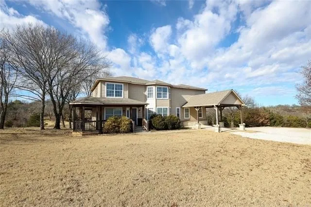 Opportunity awaits on this unique 5-acre property offering space, versatility, and income potential. The two-story home features 3 bedrooms, 2.5 baths, an office, two living areas, and a cozy fireplace. A wraparound porch invites you to relax and take in the peaceful setting, while the attached carport adds everyday convenience. With its layout and size, the home can easily be used as a private residence or transformed into a lodge.