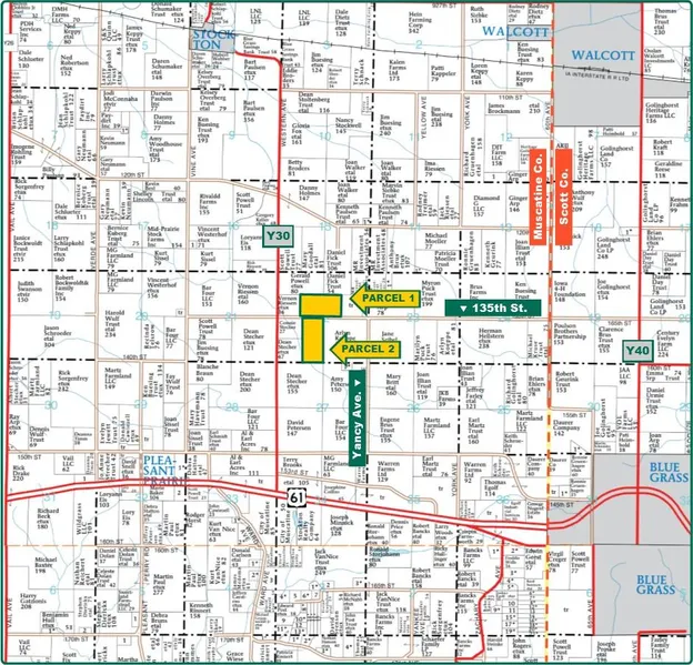 160 acres, m/l, located 3 miles northwest of Blue Grass, or 2 miles southwest of Walcott bordering 135th St.