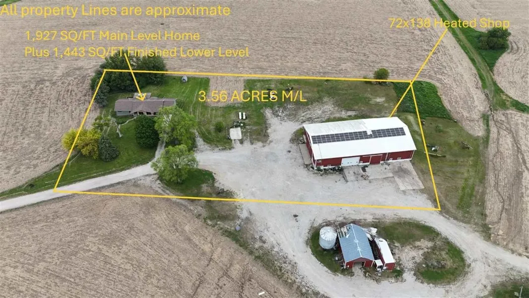 Experience the best of both worlds with this charming property in West Liberty, Iowa. Situated on a 3.56 M/L acre lot, this new listing features three main-level bedrooms, plus 2 non-conforming lower-level bedrooms, and 4 bathrooms with 3,370 square feet of living space, designed for both comfort and efficiency. This property also has a walk-out basement and a large deck area perfect for entertaining. At the heart of this property is a large, heated 72x138 Morton Building with guest quarters and office, perfect for blending work with relaxation. The shop has several large garage doors that can accommodate some of the largest equipment. There is a Large wash bay at the rear of the building. The shop has modern solar panels that help reduce energy costs. The home features well-designed living spaces, including a serene primary bedroom and well-appointed bathrooms. The house's layout balances open spaces for family time with nooks for personal retreat. Located in a friendly community, the property offers a blend of rural convenience and access to local attractions, including the Muscatine County Fairgrounds and Dutton Sports Complex. Offers for more land and more buildings would also be considered. ** survey to be completed prior to closing** **Property taxes To Be Determined once the property split and is recorded**