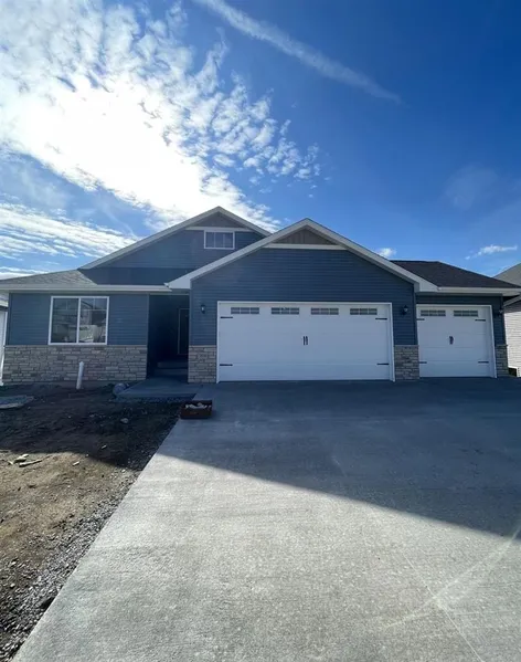New Under Construction Ranch - Photos are of a similar property This stunning home offers a 3-car garage, 4 bedrooms, and 3 full baths. The main level showcases a bright white kitchen with a walk-in pantry, farmhouse sink, striking black island, and white granite countertops. The open layout includes a spacious mudroom, a great room with a dramatic floor-to-ceiling stone fireplace, and a dining area with access to the covered deck—perfect for indoor-outdoor living. The primary suite is located on the main level and features a private bath with a custom tile shower and walk-in closet. A second bedroom and full bath complete the main floor. The lower level expands your living space with a large family room, two additional bedrooms, and a third full bath. SELECTIONS: Primary bathroom has white cabinets with gray countertops. The guest baths are gray cabinets with white tops. The trim is white throughout and has Monetary Oak LVP and gravelstone carpet in the bedrooms and basement.