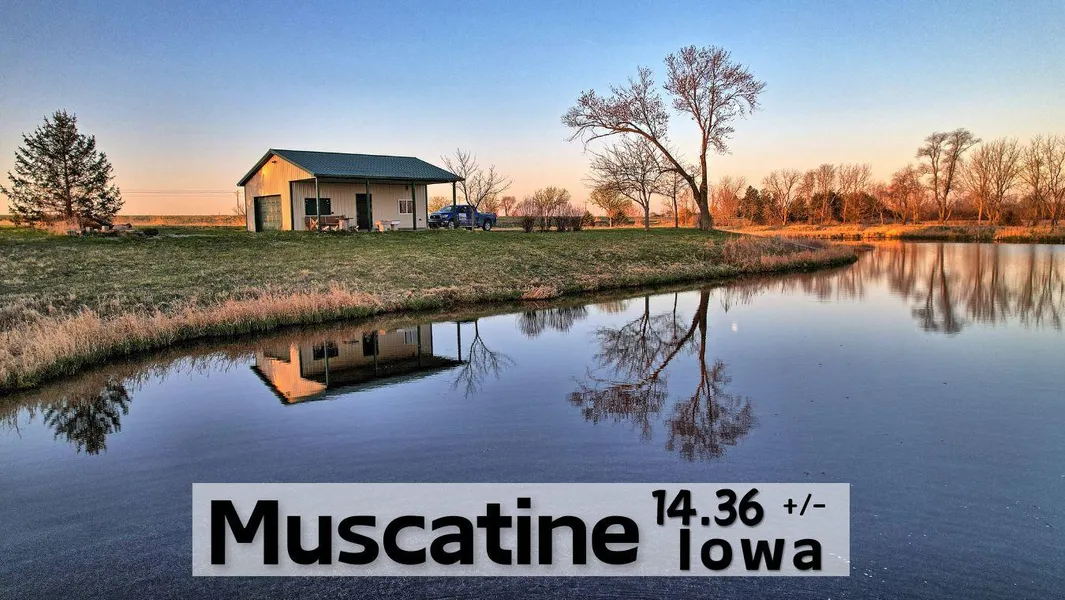 - Muscatine County, Iowa 14.36 Acres +/- Stocked Lake acreage for sale with paved road frontage on State Hwy. 61 and potential homebuild sites