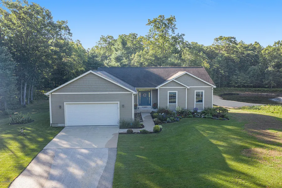 Oh, What an opportunity! Exceptionally well maintained 11-acre estate property with the convenience of being near town and US-31, but with the space and privacy of a country setting. The unique combination of both great Location AND Value. 5 bedroom/3.5 bath ranch home provides for easy living on one floor. Main floor Master and laundry. Open concept, quartz counter tops, stainless steel appliances, hardwood floors, finished walkout lower level, new composite deck with sunshade, 36x48' insulated/heated pole barn with 30-amp RV hookup, large fenced vegetable garden with running water, gorgeous flowering gardens, and pond to wet a line in or enjoy throughout the seasons. Room to run, play, enjoy, or simply getaway and relax. It's all here waiting for you. Come on out and see it for yourself!