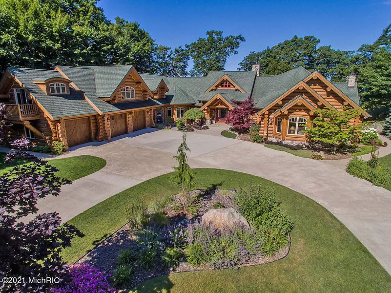This custom-built Lake Michigan log home is the ultimate private retreat on 4 wooded acres with 212 ft. of Lake Michigan frontage. Low Bluff beach access with a lakeside patio & winding paved path towards the sandy beach. This 4 bed, 4 bath home is built from hand scribed spruce logs. Beautiful wood floors with radiant in-floor heat. A modern luxury melded with rustic elements. Vaulted ceilings, floor to ceiling windows, bright and expansive rooms, all lend to the panoramic views of the Lake & surroundings woods. Main level master suite with a field stone fireplace, gourmet kitchen, and an expansive upper level that can sleep up to 12. A great home for entertaining year round or as a vacation getaway. Enjoy kayaking, sailing, swimming, snowshoeing, cross-country skiing, and much more.In floor heat in lower and upper level, heated garage and foreced air for AC only. Close proximity to mar...