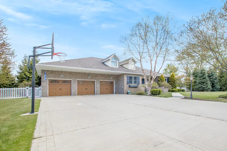 Custom built 5-bed, 3 1/2 bath home. Large main floor master. Master bath with heated floors, soaking tub, large walk-in shower, his/her vanities and toilets. Home office off the master. Main floor laundry with 1/2 bath. Main level large formal dining room, formal living room, and family room. Gourmet kitchen with double wall oven, 6 burner gas range, two dishwashers, granite counters; truly a chefs kitchen with two islands and lots of prep space. The basement has a large entertaining space complete with surround sound, plenty of room for pool/air hockey tables, kitchen with bar, fridge, dishwasher. There is also an additional canning kitchen that includes a stove, sink and dishwasher. There is an additional bedroom/bathroom, a workout room and plenty of storage. The home is on two lolots with a large fenced in yard, large in-ground pool, a pond and waterfall. This home has a large, detached garage with a small pool house bathroom along with a 3-stall attached garage
