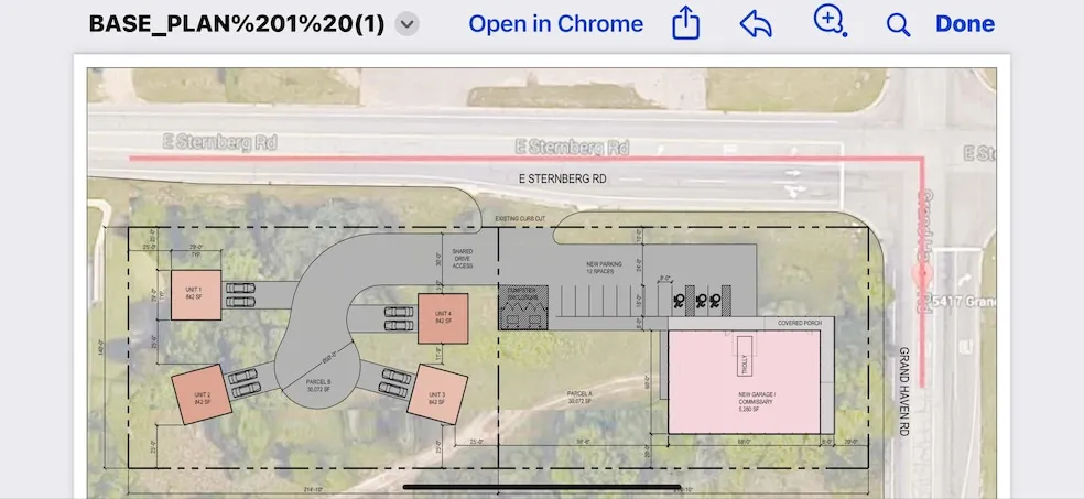 Corner property with frontage on both Grand Haven Road and Sternberg Road, offering outstanding visibility and development potential. Zoned PURD, this site supports a wide range of possibilities including condos, apartments, drive-thru businesses, offices, restaurants, and more. The property spans approximately 1.38 acres and offers two available splits, with the front lot potentially suited for commercial use. All utilities are available at the street, and the site provides easy access to and from US-31, just a half-mile away, and is only one mile from the Lakes Mall. A prime location at a high-traffic intersection ready for future growth.