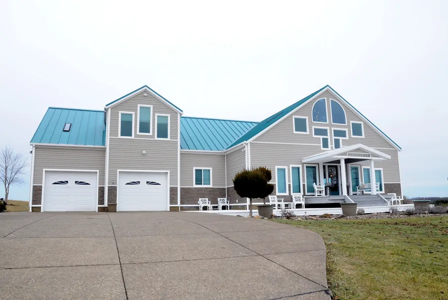 This INCREDIBLE California-style 2-story home is built with quality construction & is one of a kind for this area with its modern flair. The open floor concept has a cozy formal living area plus casual living room with cathedral ceilings, high modern windows & gas fireplaces w/remote start. The kitchen offers more counter space & glass-front cabinets than you'll ever need. Enjoy the breakfast bar/sunroom while watching the sunrise over the countryside with morning coffee. Two bedrooms & full bath are on the main floor w/unique custom lighting in bathrooms & jetted tubs in master & guest baths. The 2nd floor offers an open concept living area w/gas fireplace, office area, 3rd bedroom, walk-in closet room, & master bath large enough for a 4th bedroom. A floating staircase leads to a fully finished walk-out family room, 5th bedroom, bath & laundry. Attached 2-car garage is complete w/electric openers, floor drain & added storage. A hair salon in back of house has separate/private entrance w/half bath and could make a great in-law suite. Lots of room for entertaining w/covered front porch & patio area, covered back patio & decks all situated on private 2.25 acres & is just icing on the cake for this gorgeous property. FREE GAS included, elite sewage system & excellent water well (public water available soon as well). This home has been hand designed from the bottom up - Additional building specs have been attached to this listing as a supplement. Additional land is negotiable.